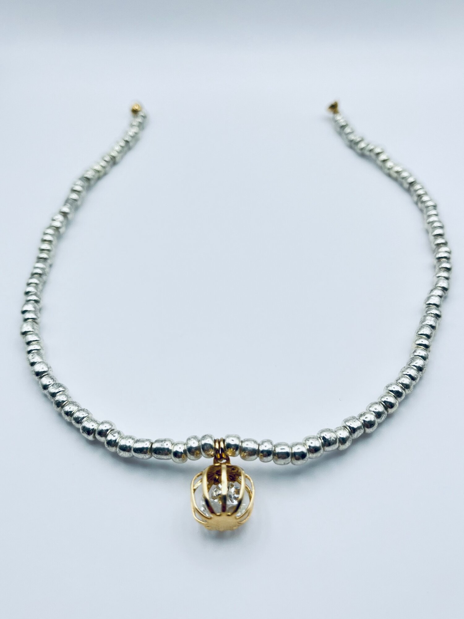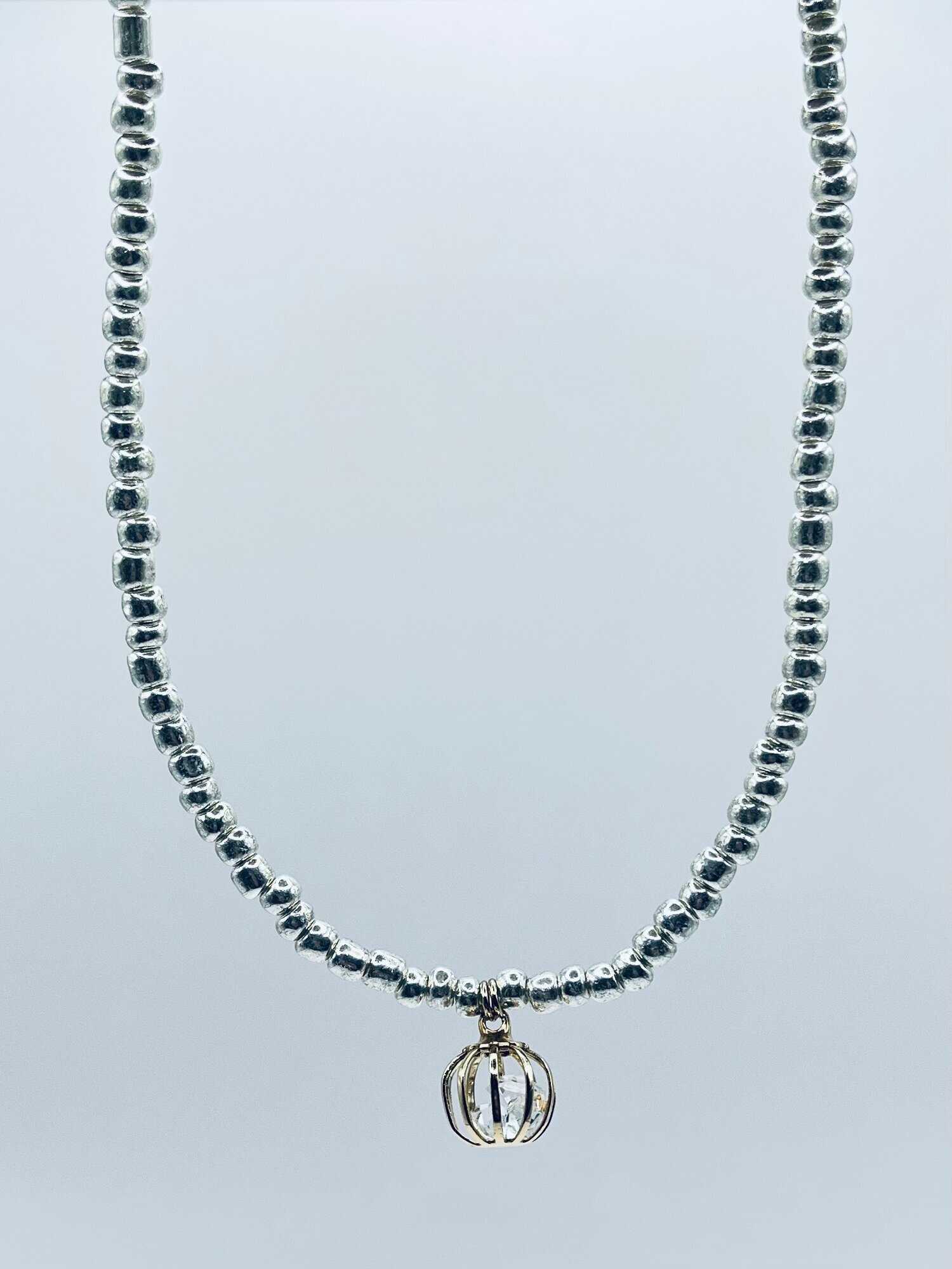 Чокер Brand-is - стильный аксессуар для женщин и девочек, который станет ярким акцентом в вашем образе. Изготовленный из стекла, этот чокер ручной работы выполнен в серебристом монохроме и украшен ажурными элементами и коронами.